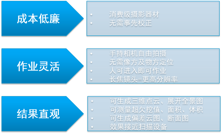 基于3DZI技术的检测方法具有成本低廉、作业灵活、结果直观三大特点。首先,该方法使用的拍摄设备是消费级摄影器材,且无需事先进行校正。其次,该方法现场作业时可手持相机自由拍摄,无需严格的像方及物方定位(净空检查时需要布设控制点)。对场地要求低,人可进入的场所即可作业,也可配合辅助设备实现半自动化的检测。当需要更高分辨率时,更换相机镜头即可。最后,使用3DZI技术对照片处理后可生成三维模型、展开全景图并进行联动浏览,从三维模型及展开图上可测量净空、计算面积和体积,可生成偏差云图、断面图。所展现出的效果接近于价格昂贵的激光雷达设备。