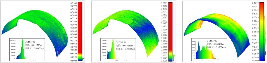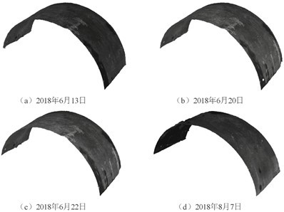 某膨胀性黄土隧道,施工过程中出现大变形,两侧收敛及拱顶下沉值超过50cm。跟踪拍摄隧道初支进行三维重建,并根据多期重建点云数据计算比较获得到初支全场净空变化。比监控量测更直观的反应初支整体变形情况。