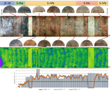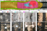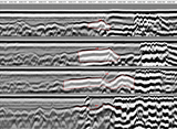 某隧道出现了大面积剥落掉块现象。为探明问题原因及影响范围,使用相机对问题区段进行了全面拍照,并环向布置间距为1m的高密度测线使用地质雷达对衬砌进行扫描。对照片进行三维重建及矫正拼接,得到衬砌表观展开全景影像。使用矫正模型反向叠加地质雷达检测厚度,得到衬砌厚度云图。将展开全景影像与雷达检测结果进行叠加对比,发现防水板外露处二衬“总厚度”不小于设计厚度。推测问题成因是防水板挂贴施工不当,导致二衬混凝浇筑过程中倒灌入防水板外侧,造成防水板切割混凝土,属典型施工缺陷。